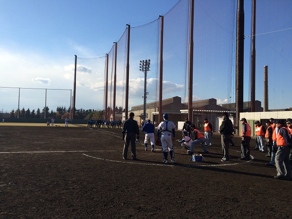 全日本野球協会は、一般社団法人日本野球機構と共催で、第15回アンパイアスクールを12月6日(土)・7日(日)、JR東日本硬式野球部柏グラウンド等で開催いたしました。天候にも恵まれ、また中央学院大学硬式野球部にも協力をいただき、受講者の方々には、二人制メカニクスを中心に、密度の高いプログラムを受講いただきました。また、夕食後は宿泊先のホテルにて座学のあと懇親会も開催し、プロ・アマの講師陣、受講生の方々がリラックスした雰囲気の中、さまざまな意見交換をされていました。