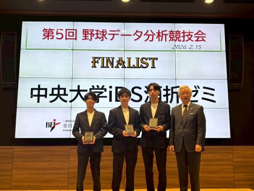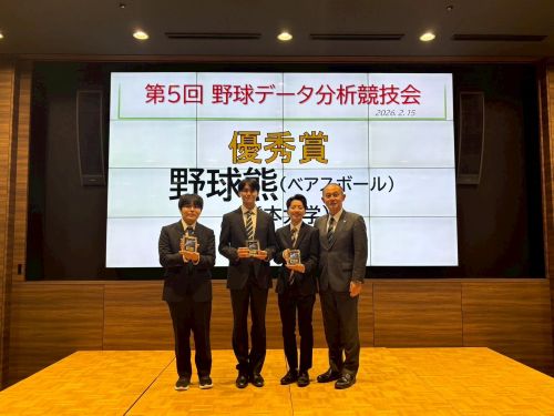 2026年2月15日(日)、東京都新宿区のJapan Sport Olympic Squareにて「第5回野球データ分析競技会」が開催され、同志社大学・大学院チームが最優秀賞、野球熊(熊本大学)が優秀賞にそれぞれ輝きました。