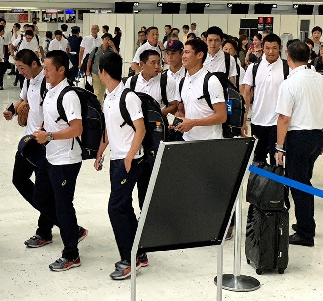 Amid intensifying friction between Tokyo and Seoul, the national team on Aug. 28 left Narita Airport for Gijang, South Korea, to compete in the 29th U-18 Baseball World Cup. The players and staff members wore plain white polo shirts that gave no indication that they are representing Japan.
