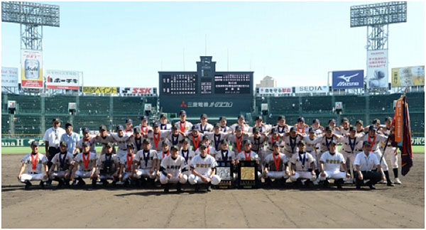 (Photo:National Champion Maebashi Ikuei and Runners Up Nobeoka Gakuen at Koshien on August 22, 2013 by The Mainichi)